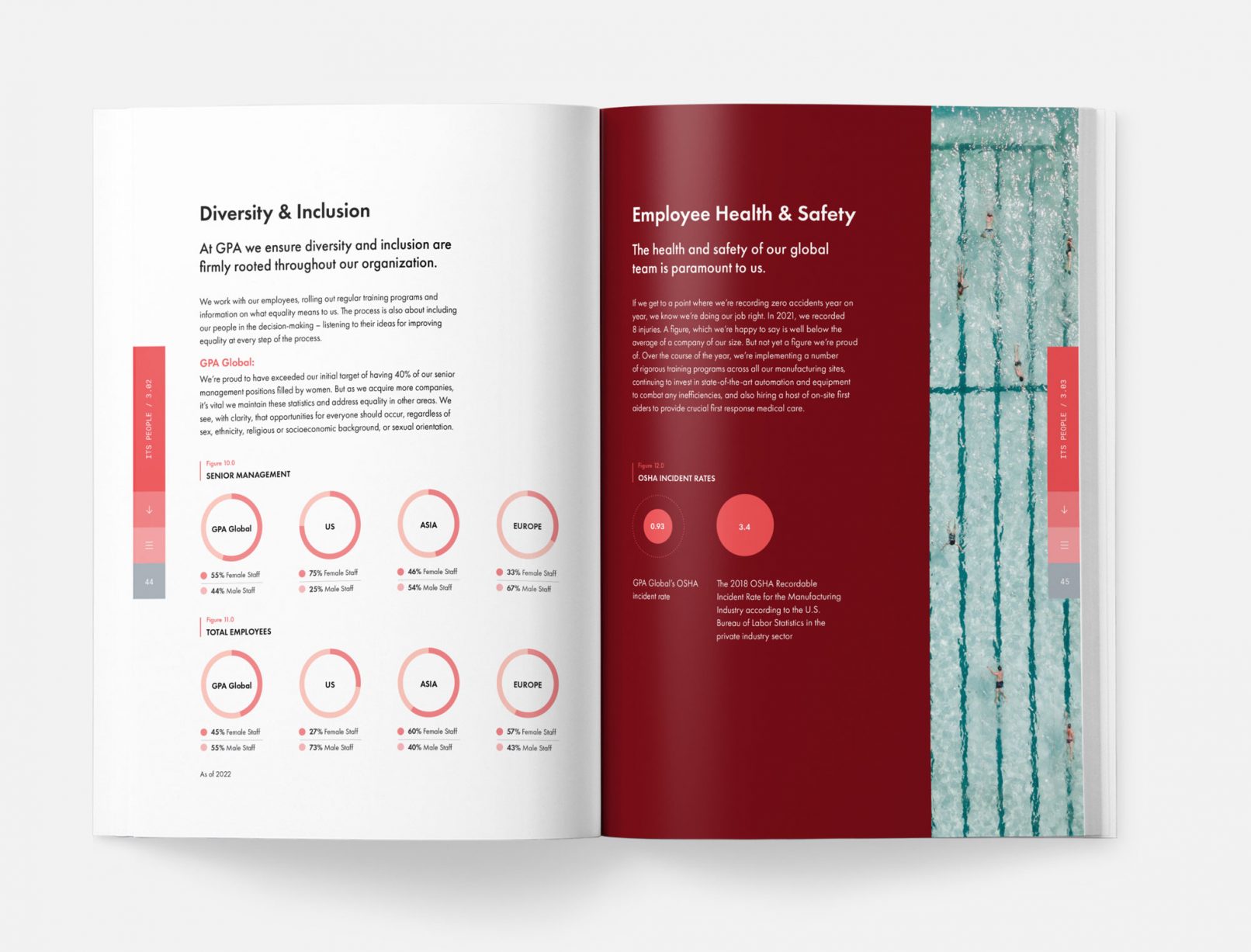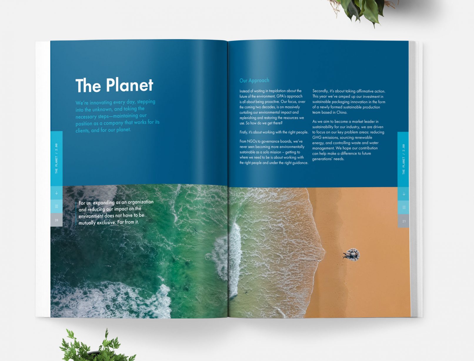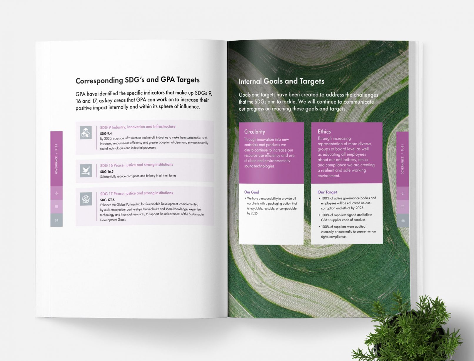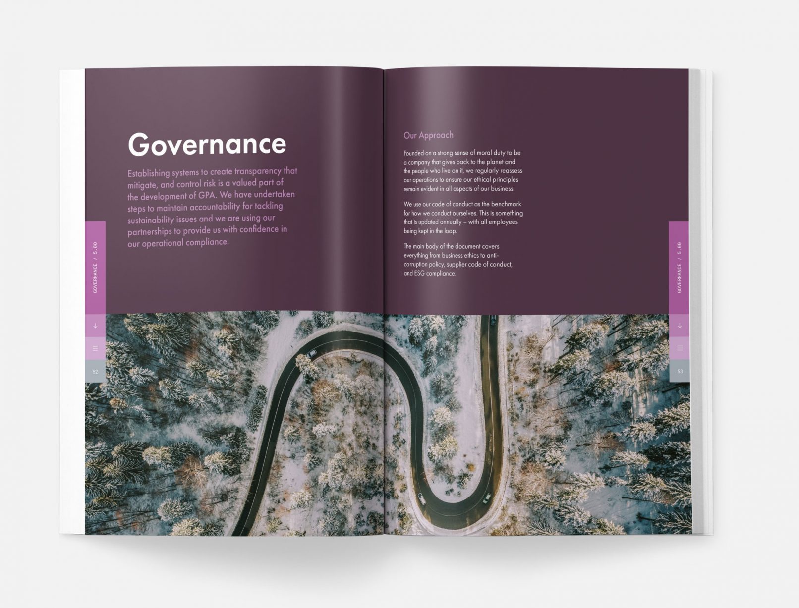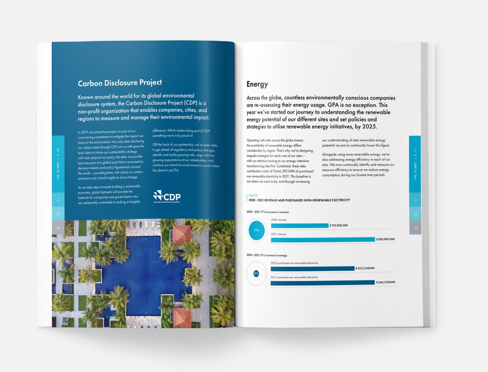 Working with the sustainability team at GPA Global we designed the 2021 Sustainability report.